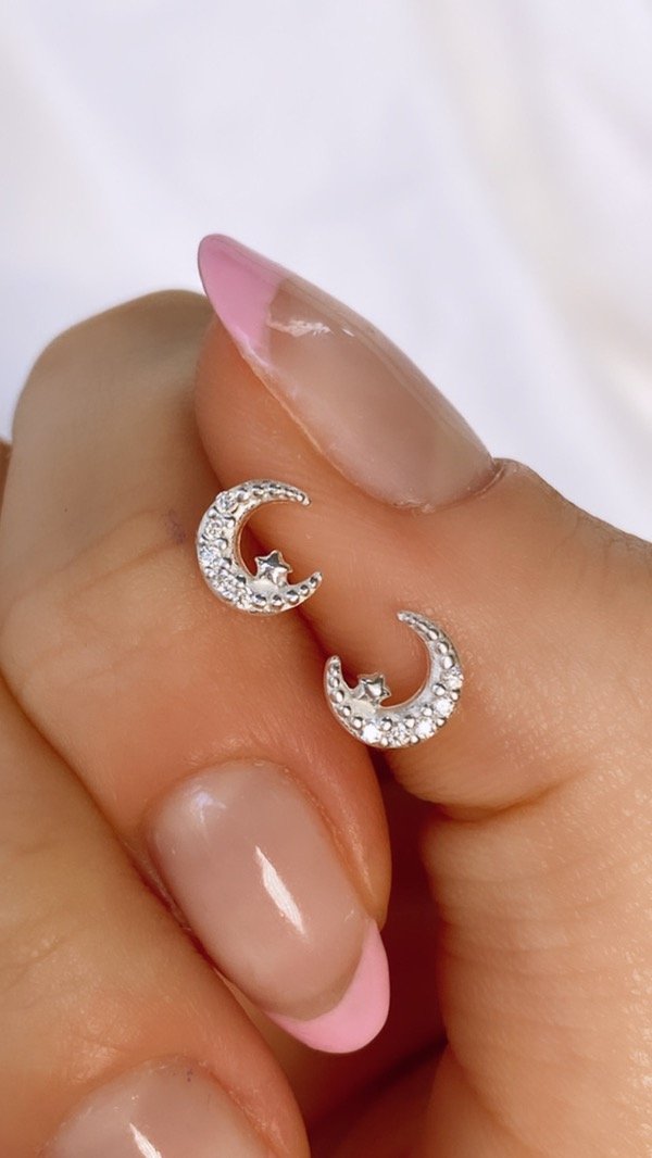 Aro luna y estrella micropave mini (par)
